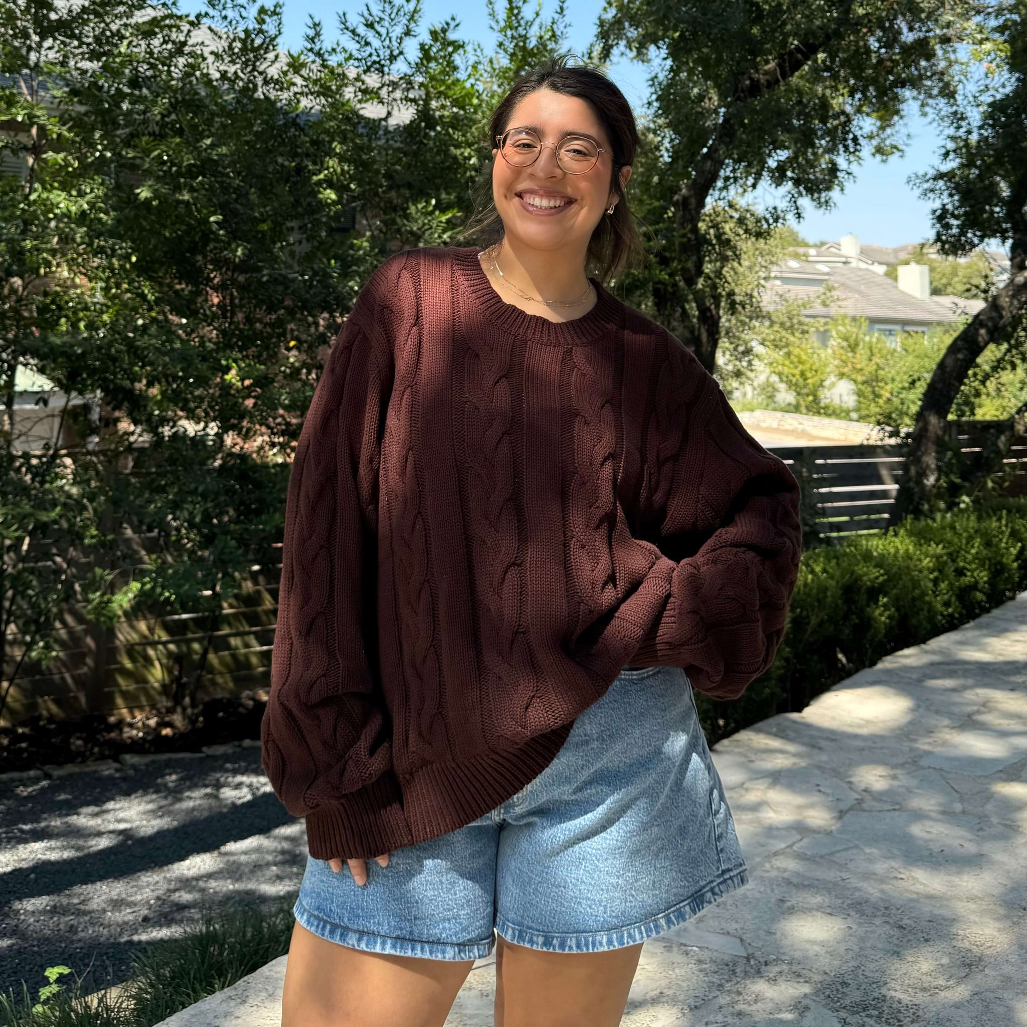 - The first-ever classic cable knit sweater designed to be oversized on bigger hips!